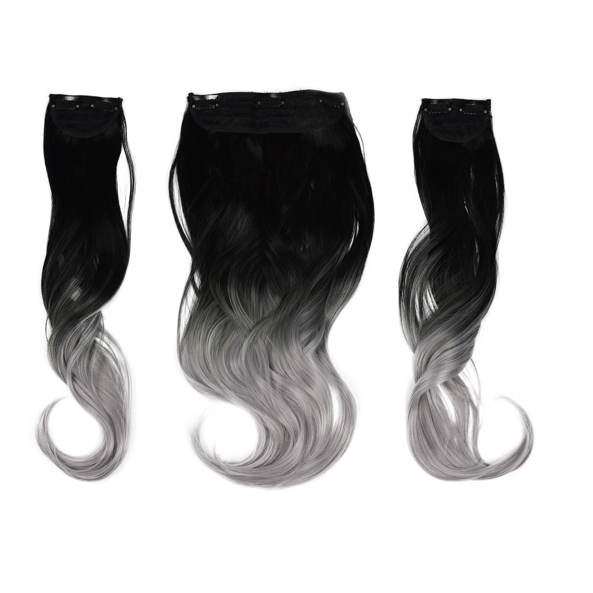 Vipbejba Sintetični clip-on lasni podaljški na 3 zavese, skodrani, ombre črno-sive S1