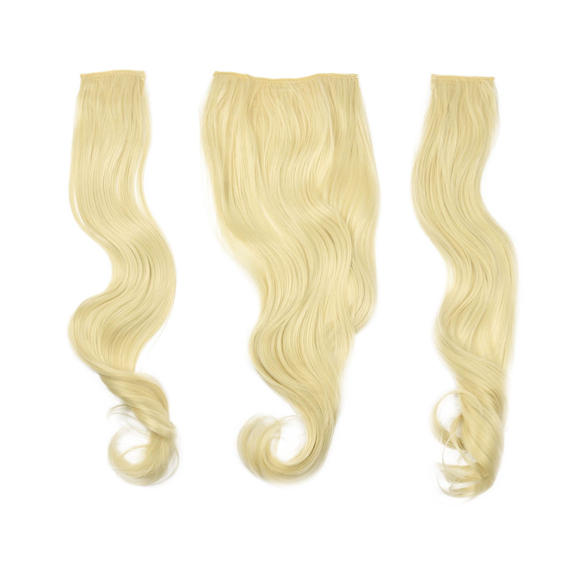 Sintetični clip-on lasni podaljški na 3 zavese, skodrani, svetlo blond F18, dolžine 50cm Celoten opis