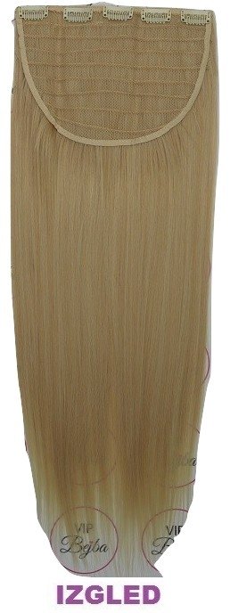 Sintetični clip-on lasni podaljški na 1 zaveso, ravni, zlato pramenasto blond F12, dolžine 60cm Celoten opis