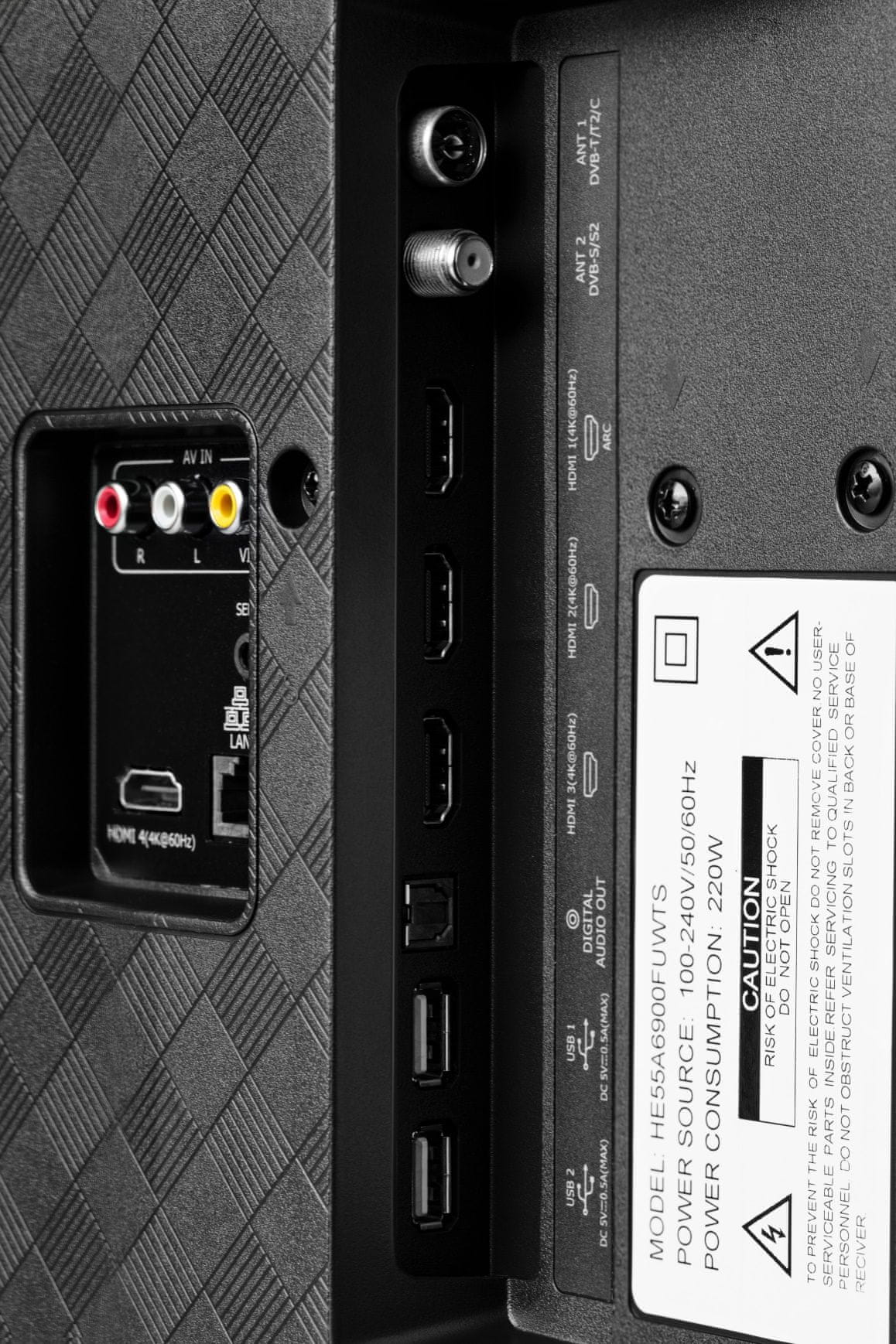 | Priključki / Izhodi / Vhodi | 1 x standardni vmesnik (CI+): V1.4; 1 x HDMI2.0/ARC; 3 x HDMI2.0; 2 x USB (2.0); 1 x S/PDIF izhod; 1 x avdio (L/D) vhod; 2 x RF sprejemnik; 1 x AV vhod; 1 x RJ45 Ethernet |