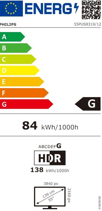 | Zaslon | Diagonala: 139 cm (55'') Ločljivost: 4K Ultra HD (3840 × 2160) Slikovni procesor: Pixel Precise Ultra HD Visok dinamični razpon (HDR): Da (HLG, HDR10, HDR10+) |