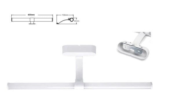 Dimenzija svetilke je 400 × 150 × 52 mm.