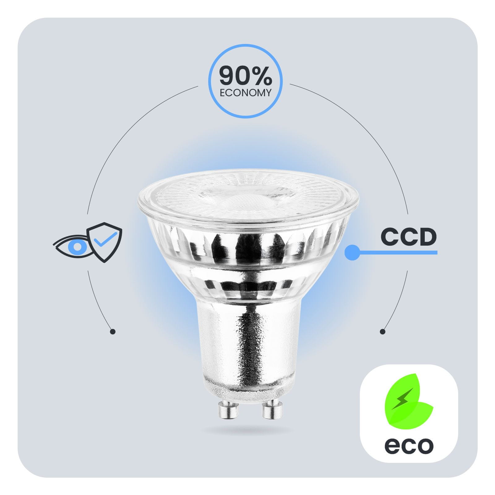 Energetsko varčna steklena žarnica LED GU10 6W je preizkušena in najboljša izbira za univerzalno uporabo ter je primerna za vgradnjo v vse standardne modele stropnih svetilk s pokrovom GU10.Prednost žarnic LUMILED je močna in stabilna svetloba ter njihova trajna energetska učinkovitost. Lumiled je blagovna znamka svetil, ki je zaradi kakovosti svojih izdelkov cenjena po vsej Evropi.