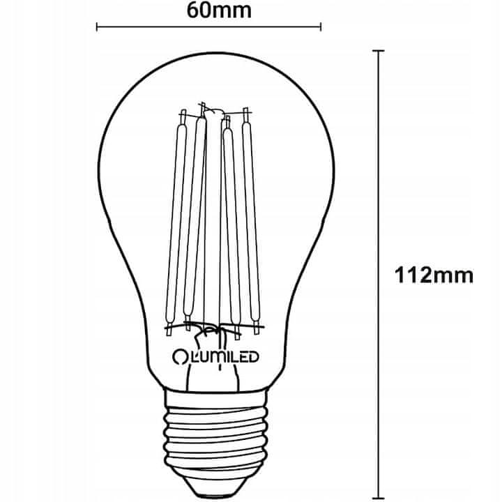 6x Żarówka LED E27 A60 8W = 75W 1055lm 3000K Moč FILAMENT OZDOBNA RETRO Tip navoja E27