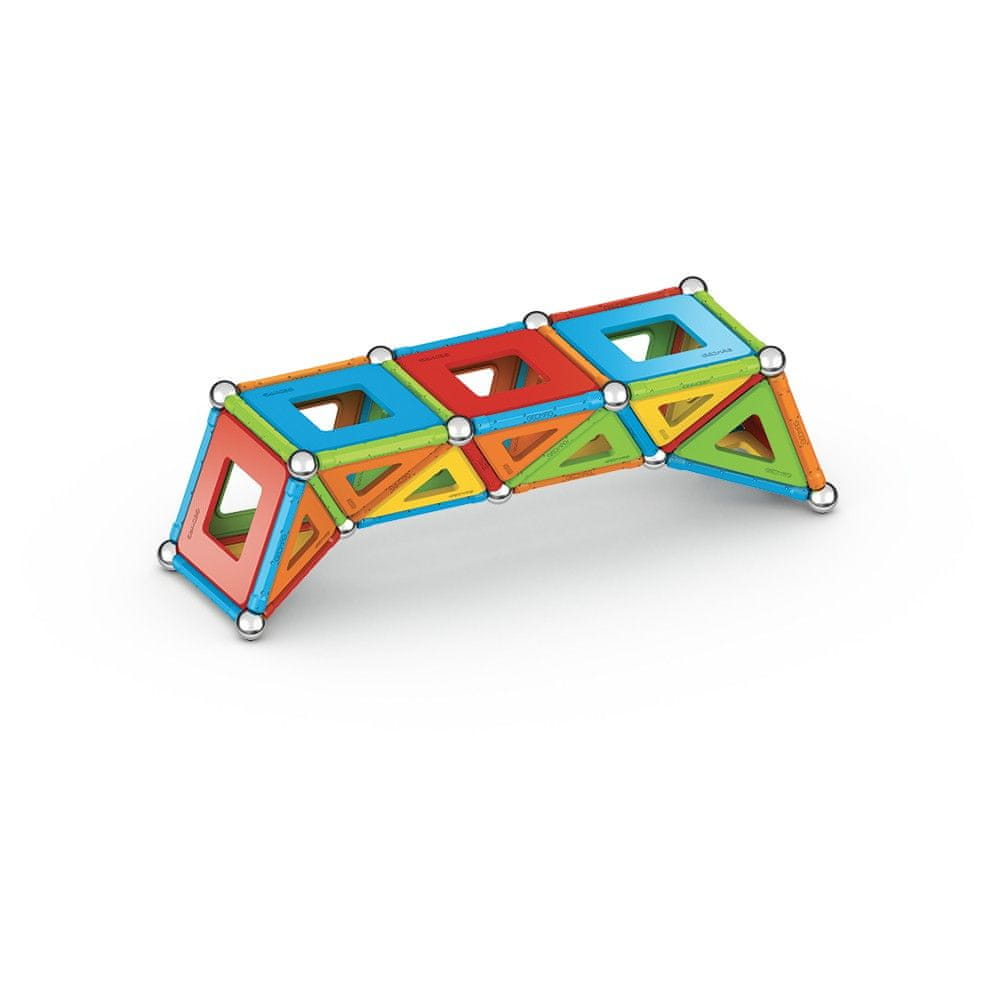 Geomag Supercolor je gradbeni set, sestavljen iz 114 kosov, ki ponuja številne možnosti za ustvarjalno zabavo in razvijanje prostorske domišljije. Komplet vsebuje skupno 36 magnetnih palic v svetlih barvah, 36 jeklenih kroglic in različne plastične plošče v obliki trikotnikov, kvadratov in peterokotnikov. S temi sestavnimi deli lahko zgradite različne geometrijske oblike in strukture, ki se zaradi močnih magnetov trdno držijo. Plastični deli imajo intenzivne barvne odtenke, ki niso le privlačni, temveč so tudi izdelani iz 100 % reciklirane plastike, kar zagotavlja okolju prijazen pristop k proizvodnji.