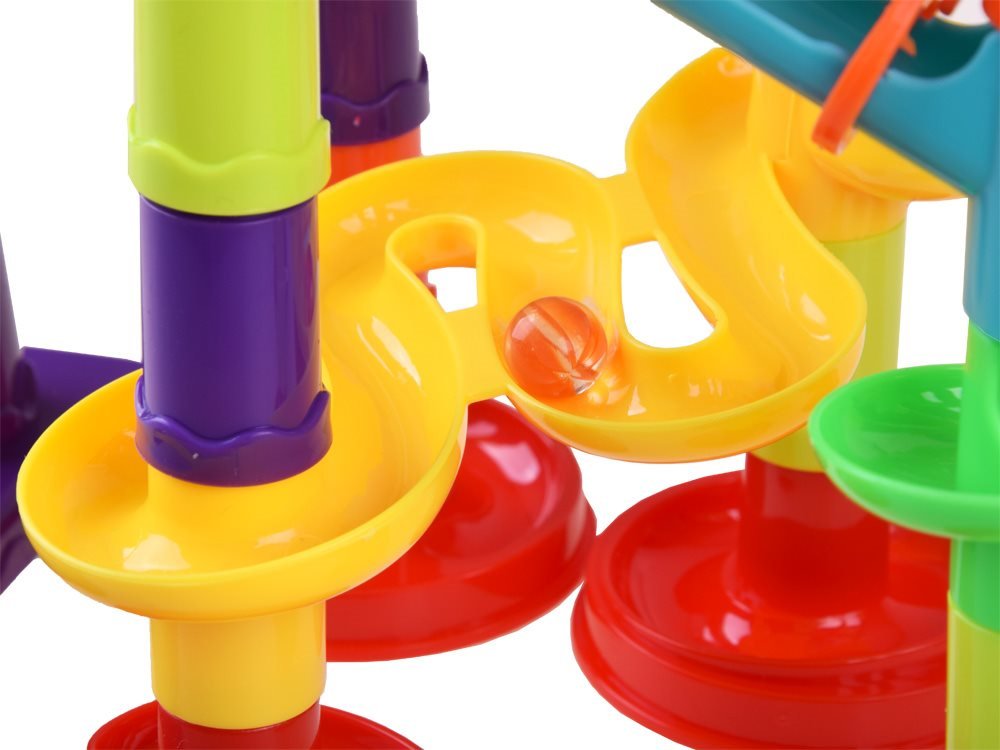 S zabavno igračo 113-delno kroglično stezo lahko otroci zgradijo vse vrste stez, labirintov in poti. Kako zapleteno progo lahko zgradite? Vendar bodite previdni, pomembno je, da žogica preide skozi celoten labirint. Premagati mora vse pasti. Gradite po višini in širini. Uporabite vse dele, da bo kroglica prišla do cilja. Vaša domišljija ni omejena. Komplet je variabilen, varen ter deklicam in dečkom ponuja nešteto različnih kombinacij. Lahko ga zložite v širino in višino. Zato je mogoče sestaviti spektakularne večnadstropne komplete.