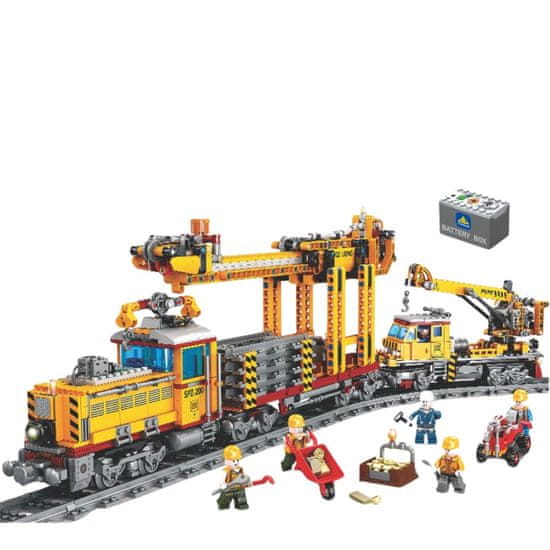 V kompletu prejmeš osem mini figuric, tovorni vlak, dva vagona, delovna oprema in tirnice, kar ti omogoča ustvarjanje prave železniške tovorne postaje. Vlak deluje na baterije in ponuja 5 različnih hitrosti, ki jih preprosto nadziraš s stikalom na vrhu lokomotive (start/stop) – brez potrebe po daljinskem upravljalniku.
