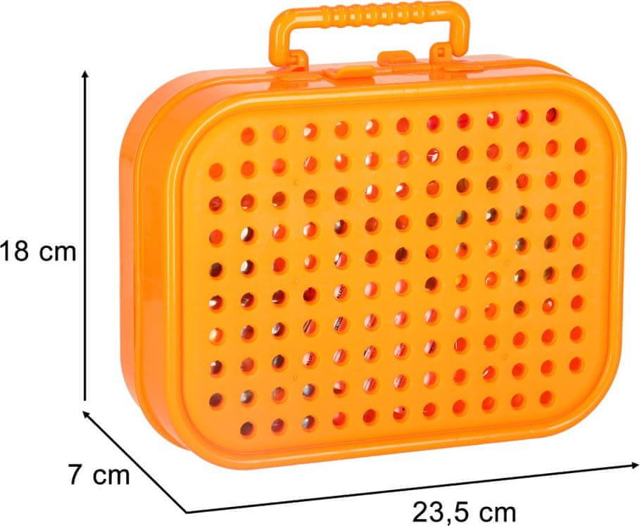 Utrjevanje ročne spretnosti in fine motorike, ustvarjalnosti in prepoznavanja oblik, Priročen plastični kovček za prenašanje je hkrati ustvarjalno „platno“ in prostor za shranjevanje, barvne kocke in vijake vstavite v luknje v kovčku z izvijačem ali baterijskim vrtalnikom, kartonske figure z vesoljskimi motivi omogočajo ustvarjanje 3D umetnin.