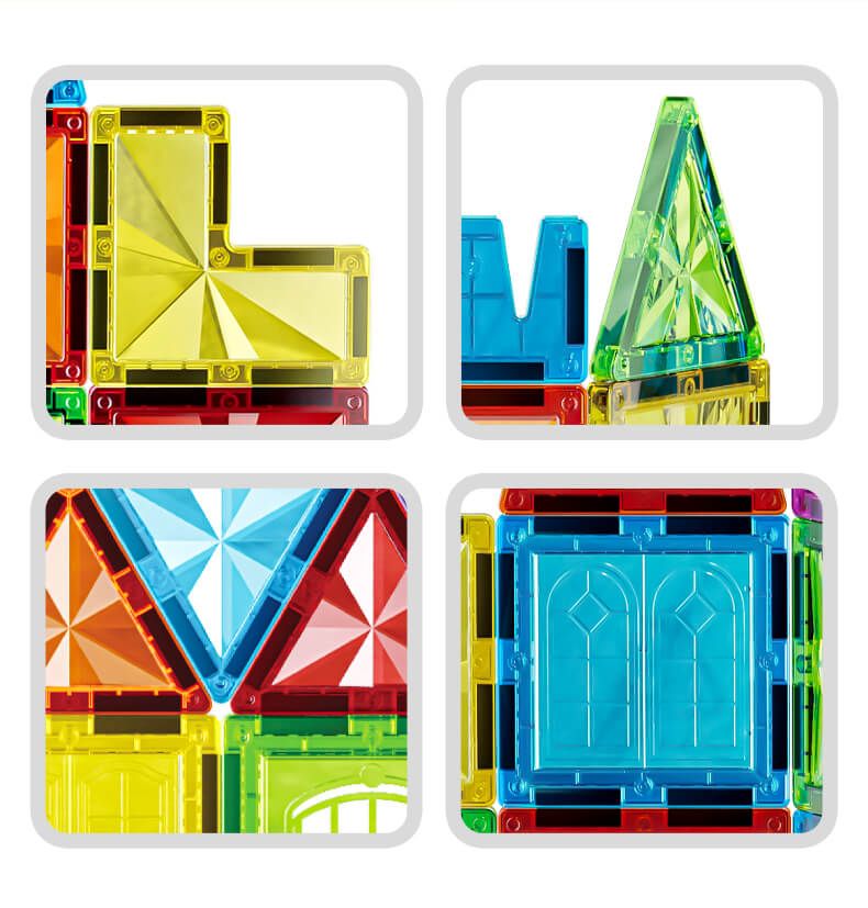 1. Razvija ustvarjalno mišljenje in motorične sposobnosti: Magnetni gradbeni set je zasnovan tako, da stimulira možgane vašega otroka. Vsaka ploščica je opremljena z močnimi magneti, ki omogočajo brez težav povezovanje delov. Vaš otrok lahko ustvarja neskončne oblike, strukture in vzorce ter tako razvija svojo ustvarjalnost in fino motoriko.