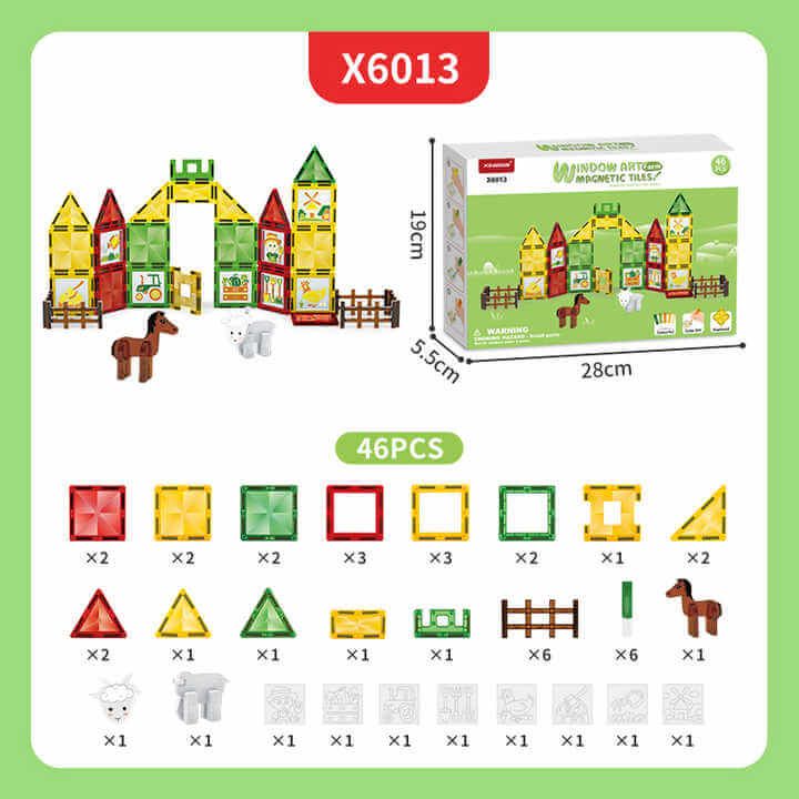 Magnetni komplet Window Art Farm 46 kosov – Magnetne ploščice: Vstopite v svet neomejene ustvarjalnosti in zabave