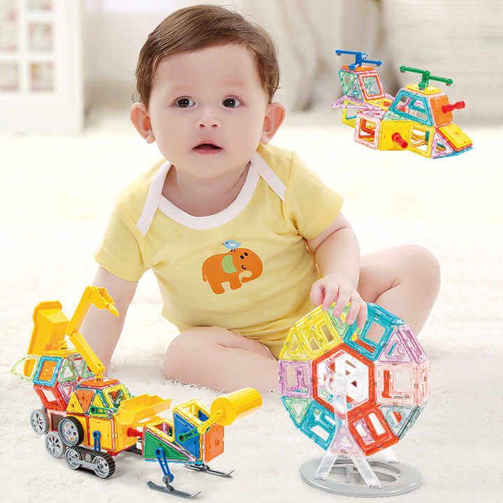 Ta magnetni gradbeni komplet združuje igro z učenjem. Vaši otroci sploh ne bodo vedeli, da se učijo! S pomočjo barvitih, magnetnih kosov lahko gradijo mostove, stolpe, vozila in druge fascinantne strukture. Hkrati se nežno seznanijo z načeli gravitacije, magnetizma in mehanike. Učijo se oblik, barv, simetrije, ravnotežja in prostorskega zavedanja – vse skozi igro.