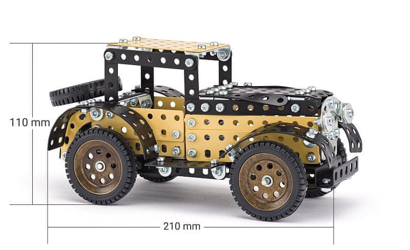 S kompletom Merkur Veteran se potopite v svet ustvarjalnosti in zabave. Ta edinstveni komplet je idealno orodje za razvijanje otroških tehničnih spretnosti in domišljije. Zahvaljujoč kovinskim delom lahko mali graditelji sestavijo model veterana. Komplet vsebuje visokokakovostne kovinske dele, ki jih je enostavno povezati z vijaki, kar spodbuja razvoj fine motorike, logičnega razmišljanja in koncentracije. Komplet vsebuje. Merkurjeva težavnostna stopnja: 3. Pakirano v škatli. Dimenzije modela: 11 × 21 × 6 cm. 18,2 × 26,3 × 5,5 cm. Ni primerno za otroke, mlajše od 3 let. Starost: 5+