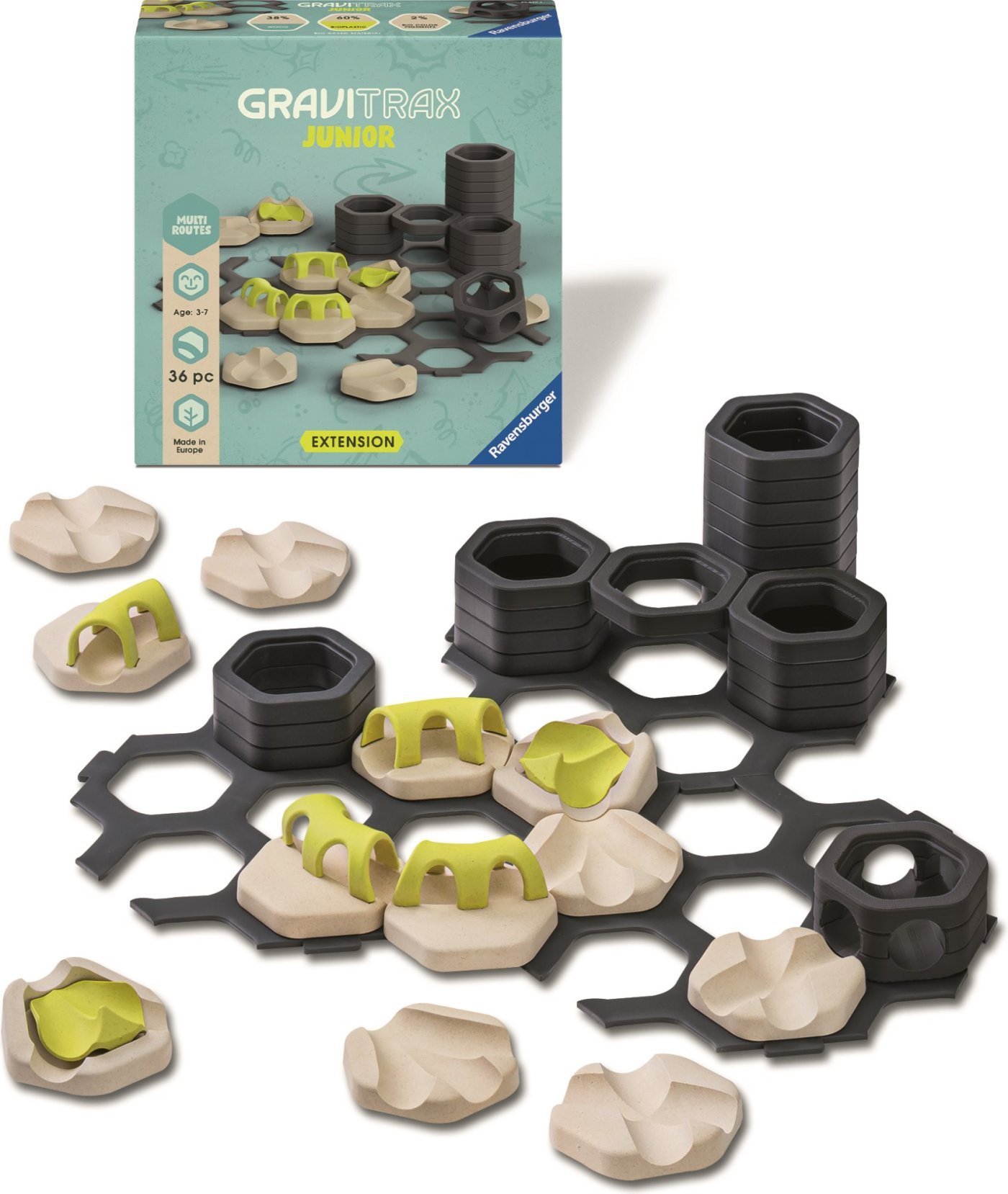 Malčki gradijo svoje svetove iz stez za kroglice, ki jih lahko poljubno okrasijo in tako ustvarijo posamezne tematske svetove. Otroci se bodo ob ustvarjalnem gradnji zelo zabavali. Razširitev Crossroads vsebuje različne elemente za ustvarjanje poti, ki se odcepijo v različne smeri in odpirajo nove možnosti poti. Otroci lahko sami raziskujejo okolje znotraj steze GraviTrax in začnejo pustolovščino, polno zapletenih poti. Vsi gradbeni in okrasni elementi so izdelani iz lesene bioplastike. Razširitev vsebuje 35 gradbenih in okrasnih elementov.