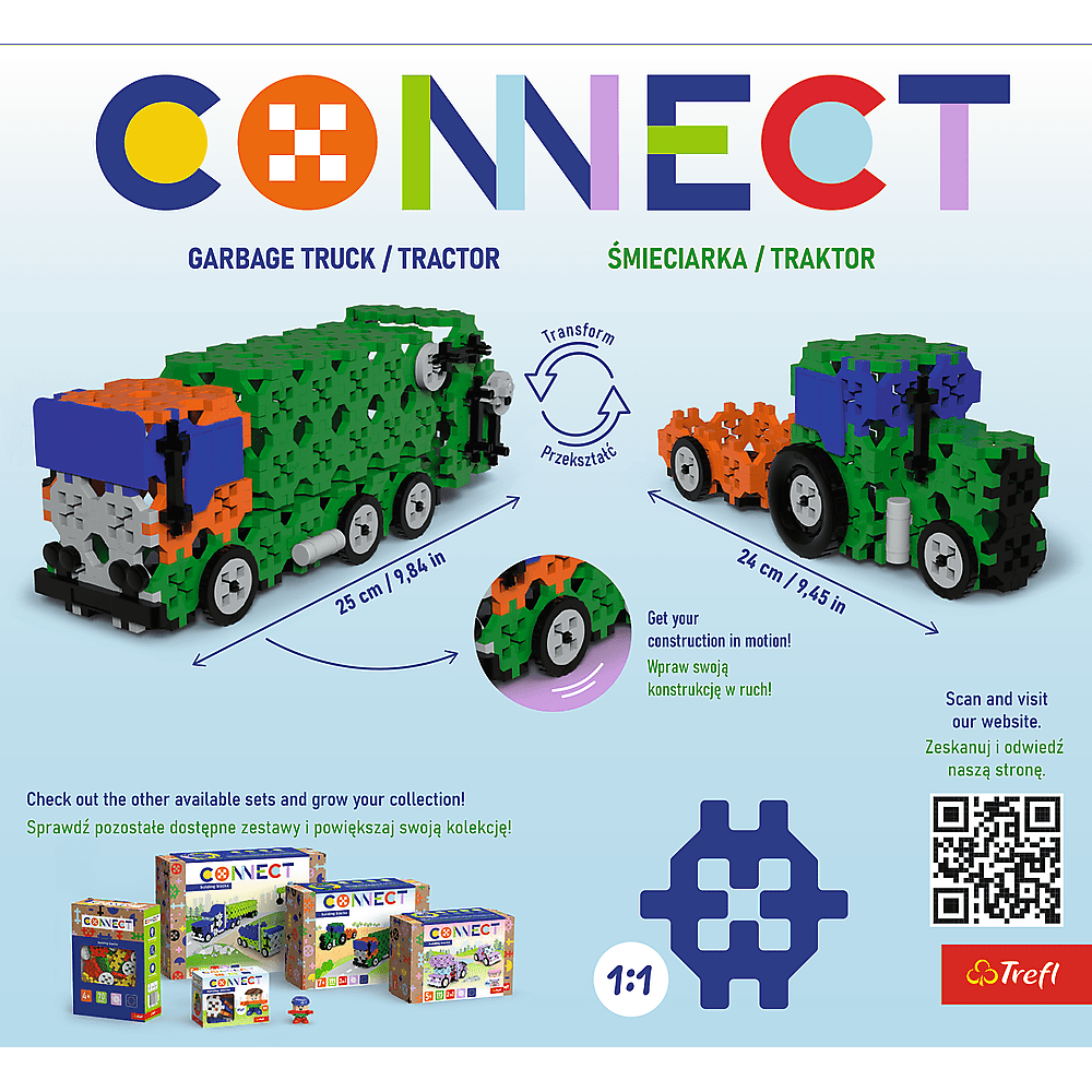 <span style=font-size: 12pt;> Komplet 2 v 1 Connect Bricks – Smetarski tovornjak/traktor