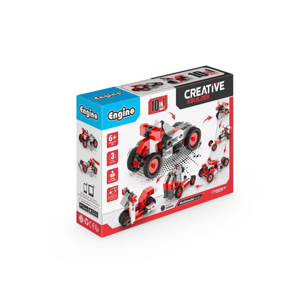Serija Engino Creative Builder spodbuja ustvarjalnost in ročno spretnost otrok. Omogočajo jim hitro in enostavno preoblikovanje enega modela v drugega. Sledite priloženim navodilom po korakih in mobilni aplikaciji ter zlahka ustvarite 10 različnih modelov. Interaktivna aplikacija Engino kidCAD prikazuje modele v 3D-tehniki, ki jih lahko poljubno obračate, pregledujete in urejate. Združljiv z drugimi vrstami kompletov Engino. Primerno za starost od 6 let naprej, izdelano na Cipru v EU.