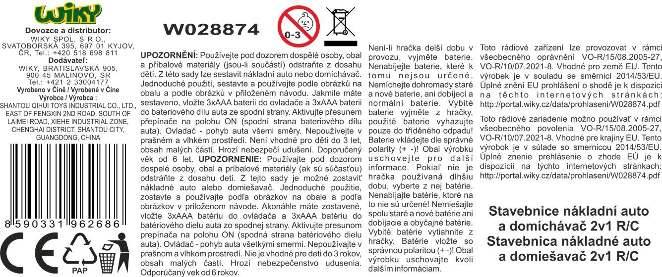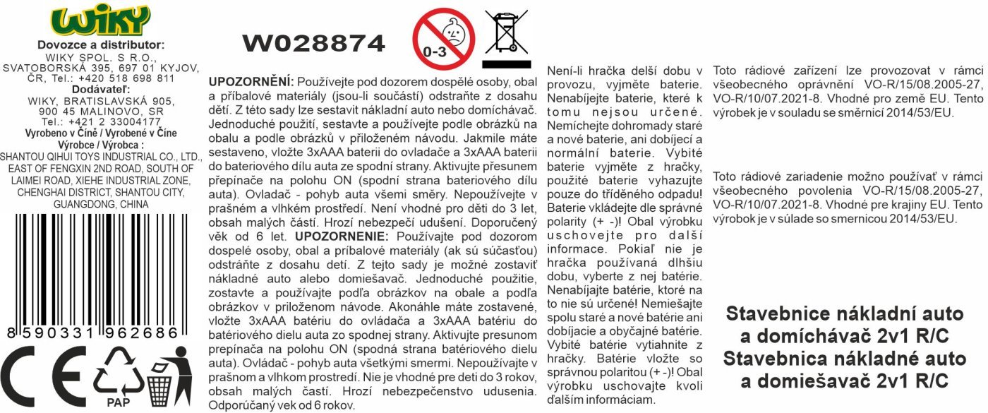 iM.Master Komplet RC tovornjaka in mešalnika 2v1. Velikost 26×12×17 cm. 3×AAA za voznika in 3×AAA za avto nista vključeni.