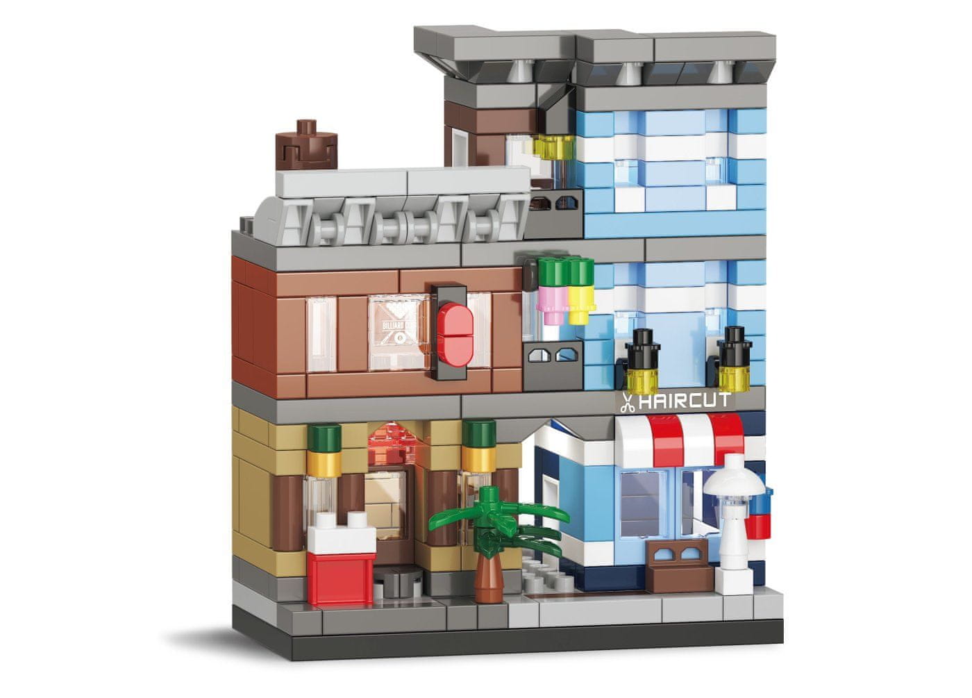 KOCO Frizerski salon 301 kosov. Dimenzije 6,5×4×7,5 cm. Priložena so slikovna navodila za sestavljanje.