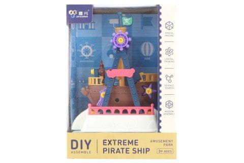 Plastična gugalna piratska ladja iz vijaka, ki meri približno 17 × 14,5 cm. Velikost paketa je približno 1,5 × 15 × 140,5 cm. Starost 3+