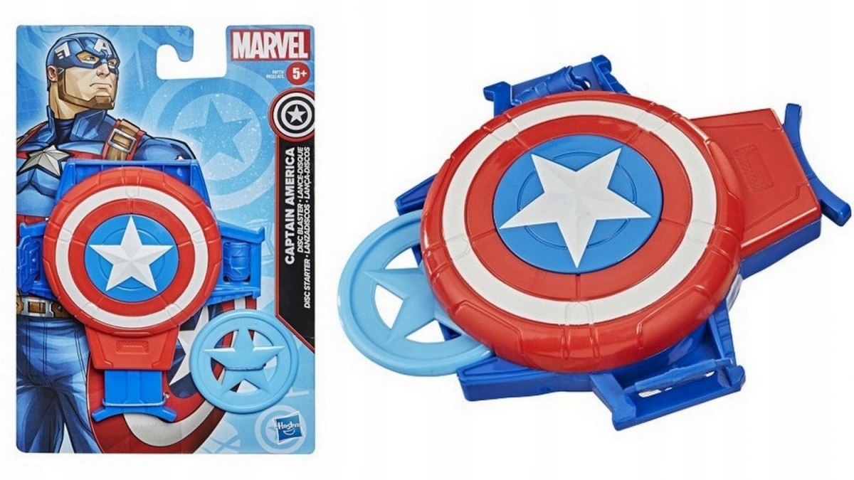 Izstreljevalec Kapitan Amerika je izdelan v značilnih Marvelovih barvah – je rdeč z modro in ima na vrhu simbol zvezde Kapitana Amerike. Z gumiranim trakom lahko izstreljevalec prilagodite obsegu otrokove roke.