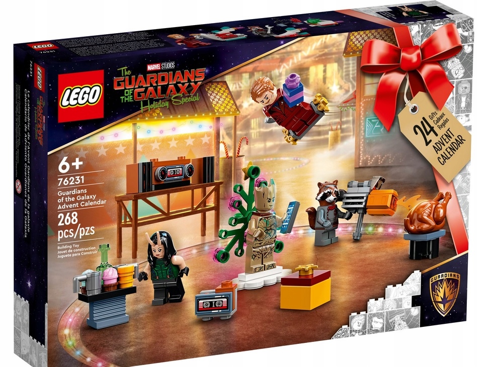 Za vsakim od 24 oken se bo vsak december skrivalo darilo za otroke. V notranjosti je šest minifigur, vključno s Star-Lordom, Rocketom, Grootom in Mantisom, ter mini sestavni deli in dodatki iz Marvelovega vesolja in serij Disney+. V notranjosti boste našli dron, blaster, ladjo Varuhov, snežaka v Thanosovem oklepu in še več. Ko pride veliki dan, lahko otroci povežejo presenečenja in poustvarijo nešteto dogodivščin superjunakov.