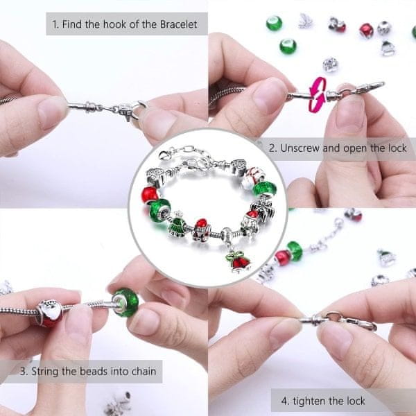 Bogat adventni koledar s katerim se na božični večer sestavi čudovita zapestnica. Paket vsebuje: 2× zapestnica, 23× obeski + 2× zapestnica, 23× obeski GRATIS. Celoten opis