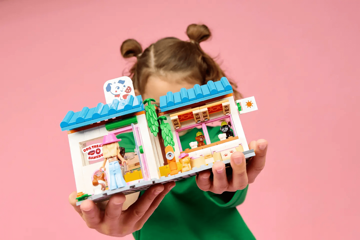 Številni dodatki, kot so piškoti, krofi, pasji priboljški, kost, posodice in transporter za živali, spodbujajo ustvarjalno pripovedovanje zgodb. Komplet je primeren za otroke od 6. leta dalje in ponuja tudi sodobno izkušnjo sestavljanja z aplikacijo LEGO® Builder, ki omogoča 3D navodila, povečavo modela in spremljanje napredka.