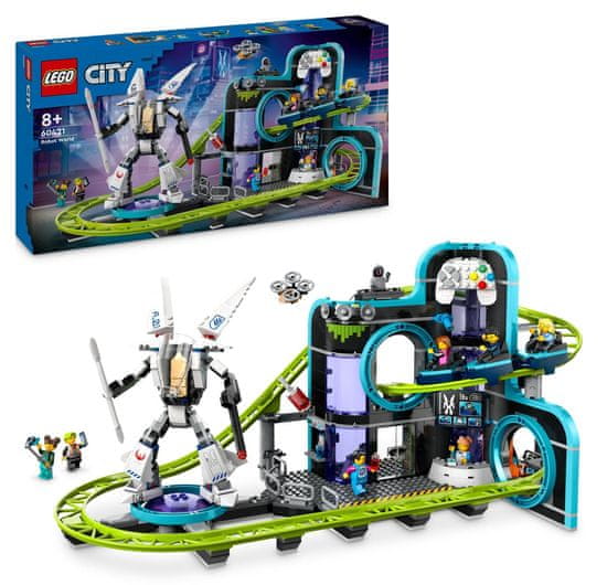 Mali ljubitelji video iger in tematskih parkov bodo navdušeni nad tem funkcionalnim modelom tobogana. LEGO® City (60421) Tematski park Robot World Theme Park je poln podrobnosti, ki navdihujejo graditelje za ure domiselne igre. Z vlakom s tremi vagoni otroci švigajo skozi futuristično okolje na temo video iger, ki vključuje igralno sobo s konzolami, areno za e-šport, ledeni bar in veliko drugih podrobnosti. Celoten opis