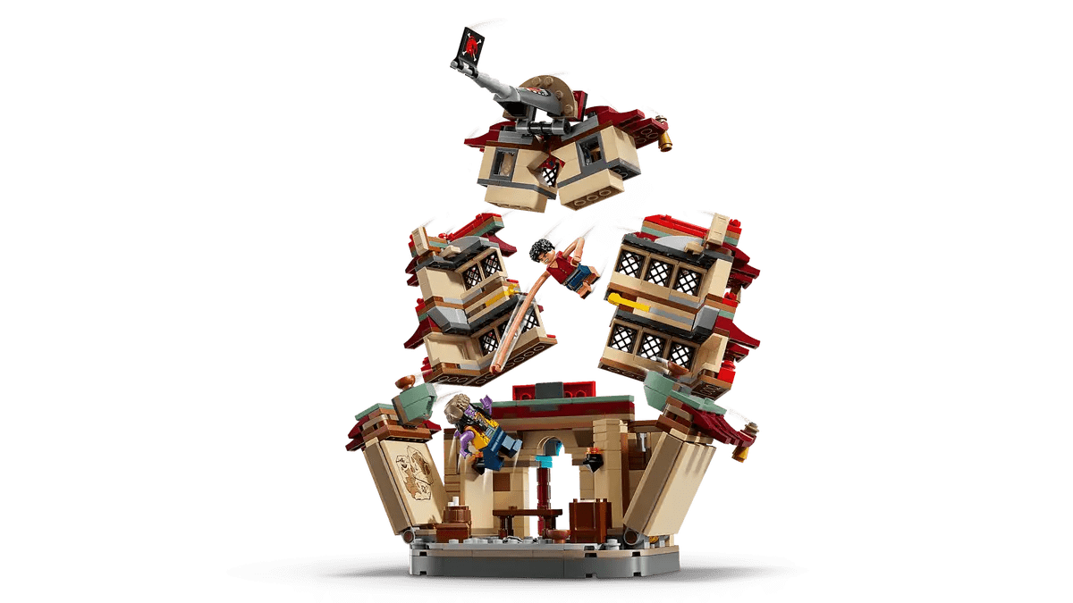 Je interaktivna igrača za otroke, ki obožujejo akcijo in pustolovščine. Poustvarja epski spopad med pirati Slamnatih klobukov in pirati Arlonga. Ta visokokakovosten LEGO set je odlično darilo za fante in dekleta, stare 9 let in več. Vključuje 5 minifiguric: Luffyja – ki ima priložene dele za podaljšanje rok – Nami, Usoppa, Arlonga in Chuja. Z različnimi funkcijami se lahko otroci vživijo v vlogo akcijskih junakov in sodelujejo v nepozabni bitki.