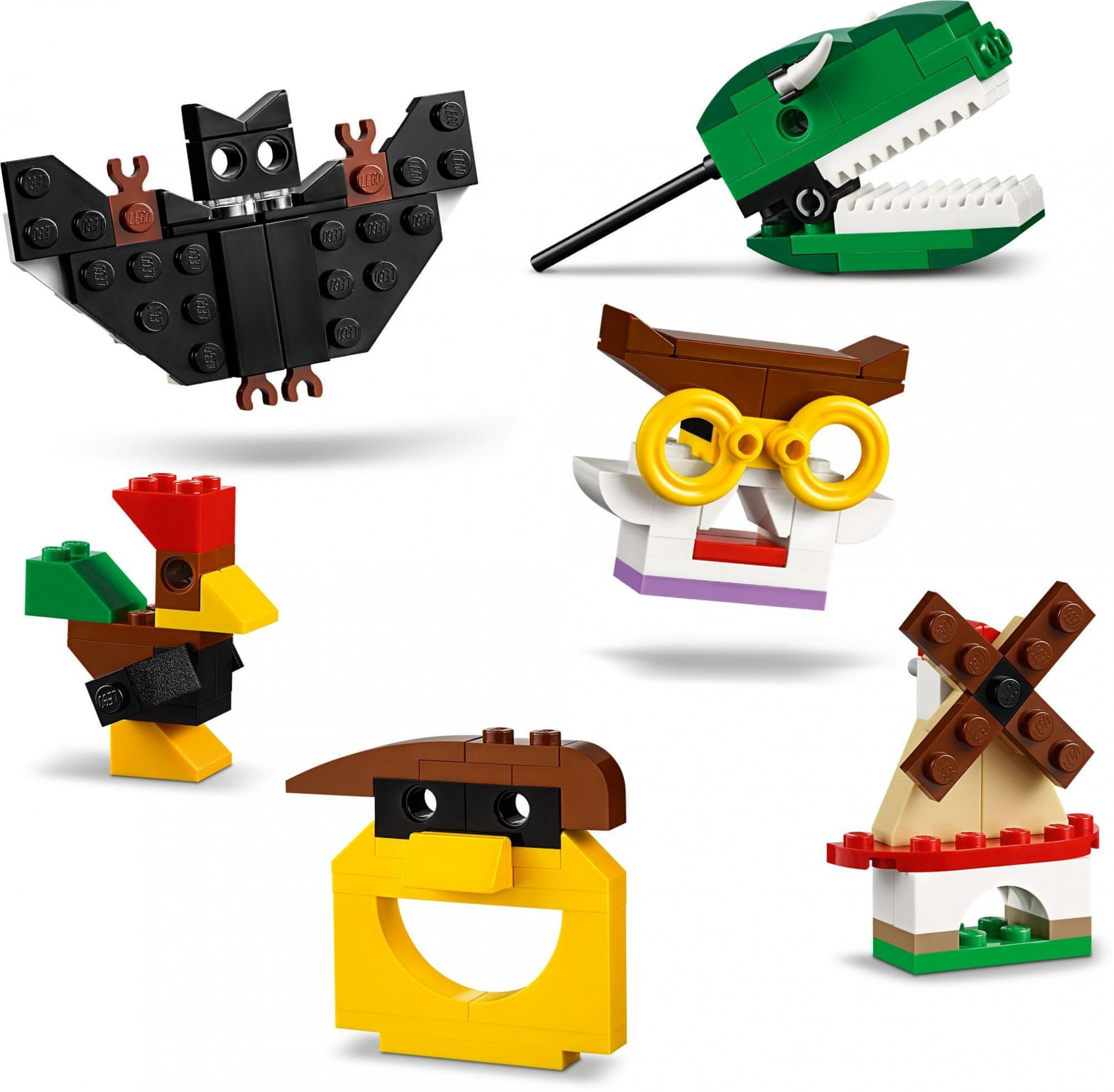• 12 sestavljivih modelov LEGO® – grad, zabaven obraz, princesa, netopir, petelin, zlobnež, gusarska ladja, sova, duh, vetrnica, morski pes in dinozaver.