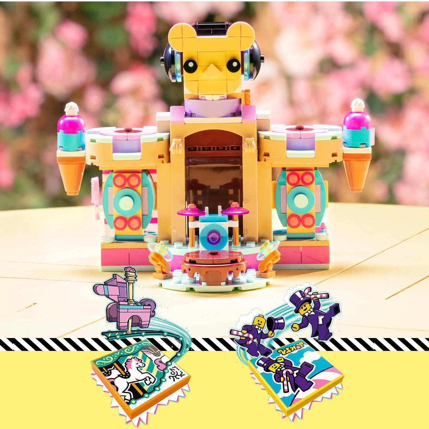 Z odrom Candy Castle (43111) iz LEGO® VIDIYO™ odprite vrata v svet glasbenih video posnetkov za otroke, kjer lahko hkrati postanejo režiserji, producenti in zvezde. Prenesite brezplačno aplikacijo in skenirajte minifigure balerine in medvedka. Nato z aplikacijo skenirajte končni model in si oglejte, kako se v otrokovih videoposnetkih spreminja v oder. Celoten opis