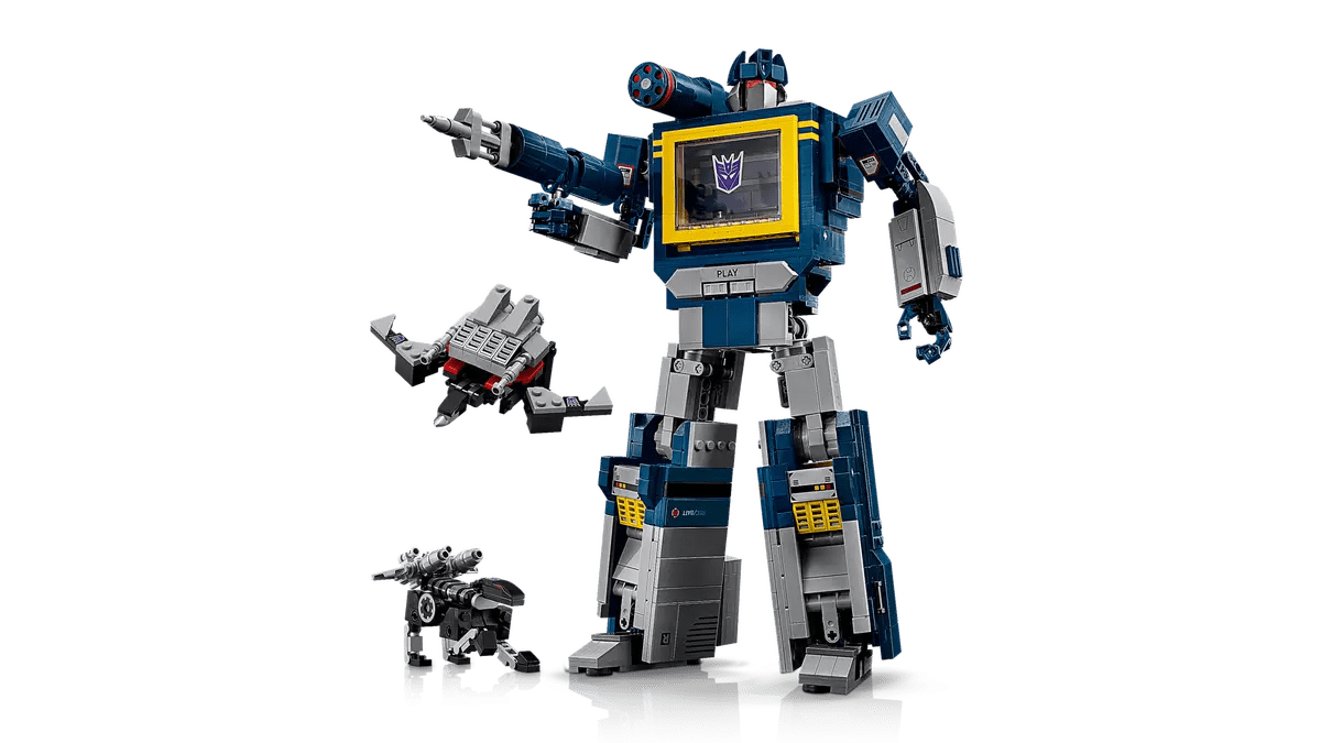 LEGO set Soundwave iz serije Icons je s 1505 deli poklon zvestemu podporniku Decepticonov. Model je ključen zbirateljski kos, saj se lahko pretvori iz figure v način kasetofona brez ponovnega sestavljanja. Edinstvena lastnost tega modela je vgrajen zvočni opeček LEGO®, ki se aktivira s pritiskom na gumb za predvajanje in predvaja ikonične fraze in zvočne učinke Soundwavea (npr. „Autobots inferior, Soundwave superior“).