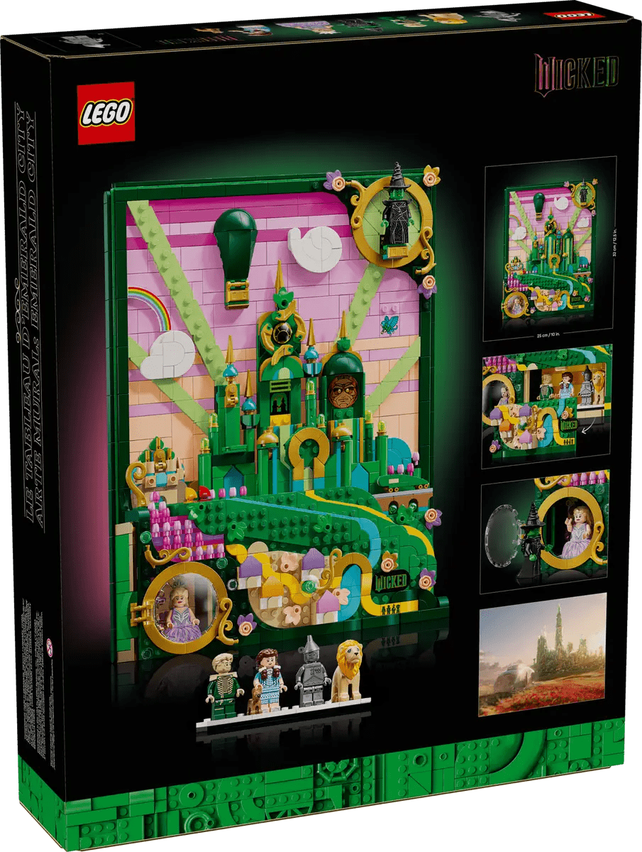 Ta LEGO komplet ponuja odraslim ljubiteljem filma Wicked (18 let in več) edinstveno priložnost, da oživijo čarobne trenutke iz filma z osupljivim 1518 – delnim 3D modelom. Ustvarite dekorativno umetniško delo, ki je polno avtentičnih podrobnosti, vključno z Gradom smaragdne barve, in rekreirajte ikonične prizore, kot sta Glindin mehurček in Elphabin pobeg. Model, zgrajen iz kock, služi kot čudovit, vsestranski dekorativni kos.