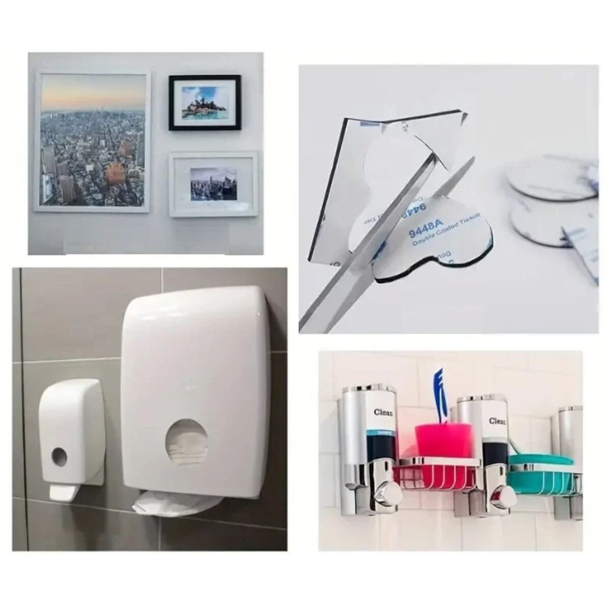 M Komplet 3M Fix Plates vsebuje 4 kose obojestranskih nalepk iz pene različnih oblik za pritrjevanje majhnih predmetov na gladke površine, kot so steklo, kovina, ploščice, barva iz lateksa itd. Akrilne trakove debeline 1,5 mm lahko uporabljate doma ali v avtomobilu. Njihova prednost je hitra montaža, dober oprijem in odprava vidnih pritrdilnih elementov, kot so vijaki ali zakovice. Nalepke lahko po potrebi tudi razrežete s škarjami. Pakiranje vsebuje nalepke naslednjih dimenzij: 1× … 25 × 25 mm 1× … 55 × 42 mm 1× … premera 40 mm 1× … premera 50 mm Uporaba.