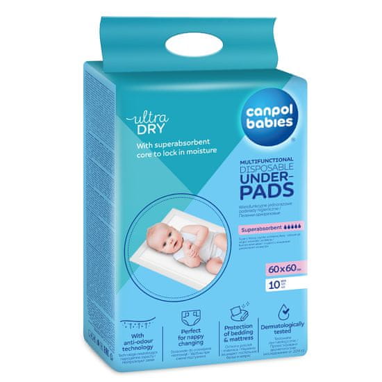 Multifunkcionalni higienski vložki Canpol babies z vodoodpornim zaščitnim slojem na dnu vložka so primerni za številne situacije. Super vpojna blazinica hitro vpija tekočine in zadržuje vlago v notranjosti blazinice. Higienski vložki so bistveni za ženske v poporodnem obdobju. Uporabni so pri previjanju dojenčka, na potovanjih, ob obisku klinike ali kot zaščita ležišča (puščanje plenic, odrivanje itd.) in pri učenju oblačenja.