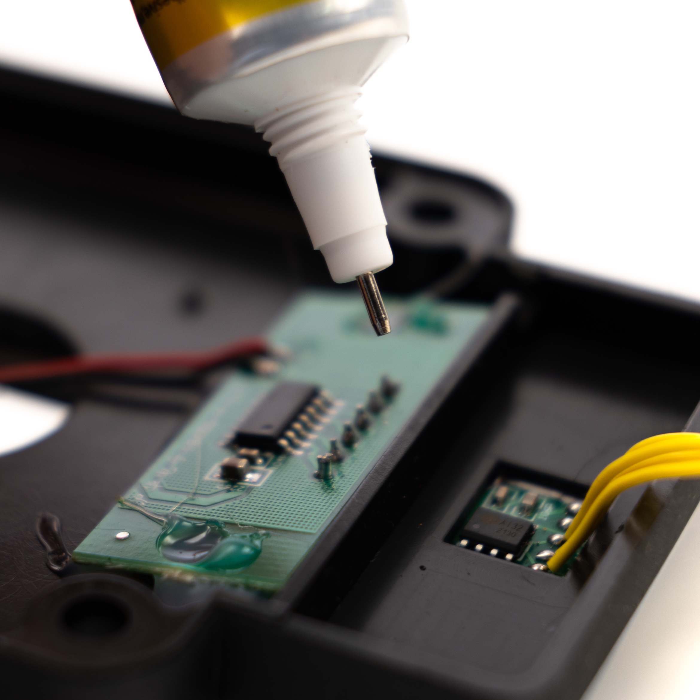 - Popravilo elektronike: Lepilo T-7000 15 ml je idealno za popravilo mobilnih telefonov, tabličnih računalnikov, prenosnih računalnikov, elektronskih naprav in drugih elektronskih naprav. Zahvaljujoč natančnemu koncu aplikatorja lahko lepilo natančno nanesete na občutljive elektronske elemente, kot so žice, mikro stikala ali majhni elementi vezij.