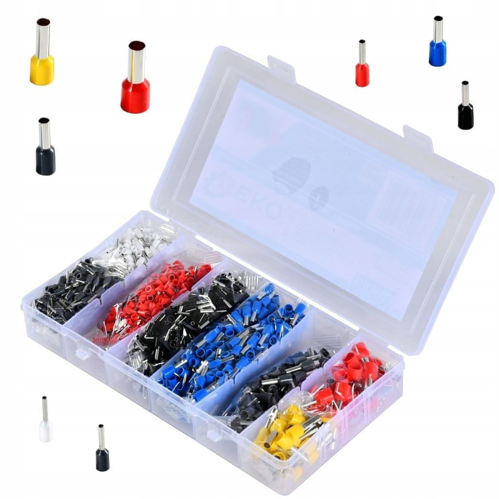 – 1200 kosov: Obsežen komplet vsebuje različne velikosti in vrste izoliranih kabelskih tulcev.