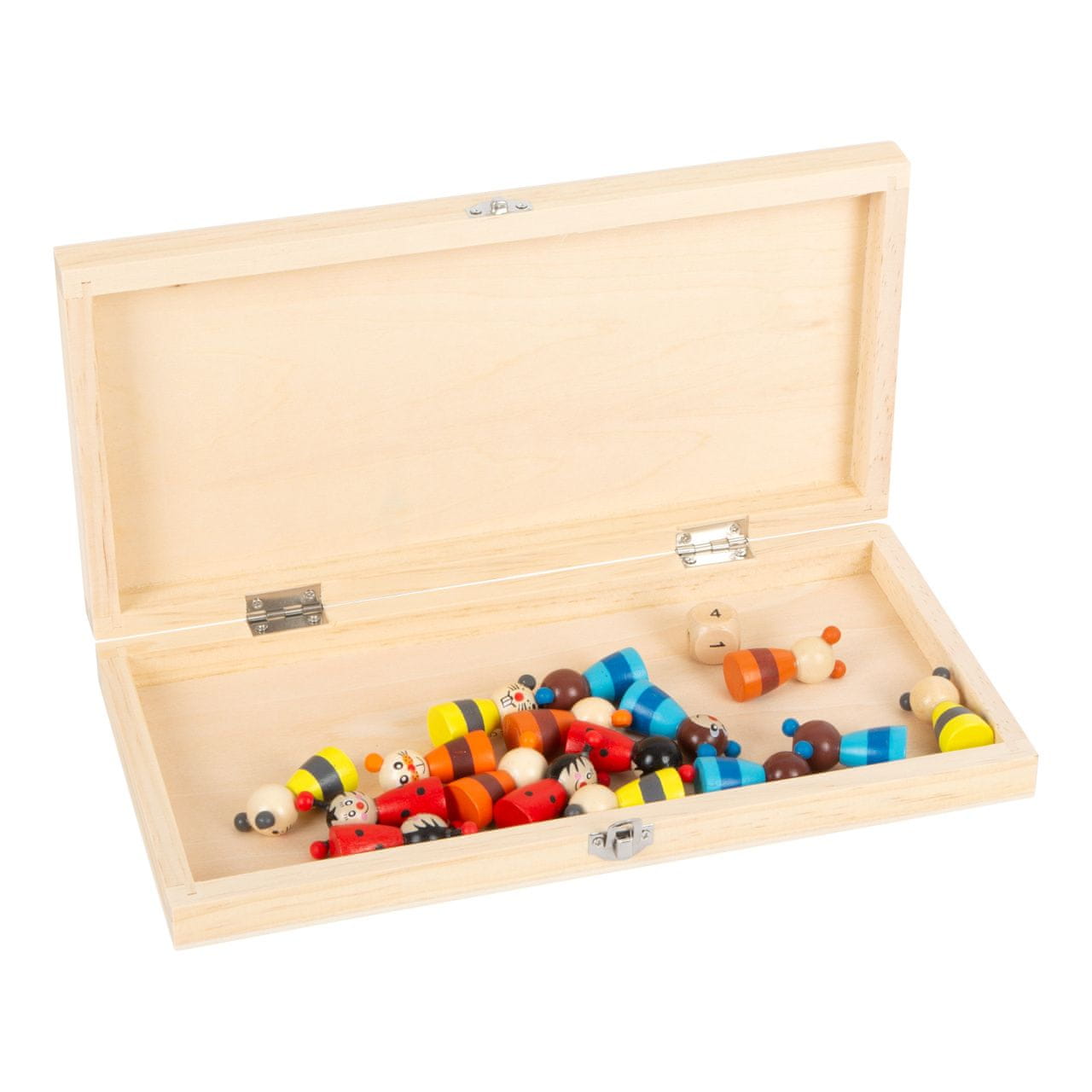 Klasična igra s smešno obliko, v kateri igralci igrajo z živalskimi liki. Igra je namenjena 1–4 igralcem. Z nameščanjem igralnih elementov otroci razvijajo fino motoriko. Simpatični, barviti igralni elementi so oblikovani tako, da so prijazni do otrok. Igro je mogoče priročno in varno shraniti v leseni škatli z zapahom, zato je idealna na potovanjih ali izletih. Paket vsebuje 16 figur in 1 igralno kocko. Glavneznačilnosti: klasična namizna igra za največ štiri igralcerazvija motorične spretnosti in logično razmišljanjeizdelano iz lesapraktična embalaža, ki jo je mogoče ponovno zapreti