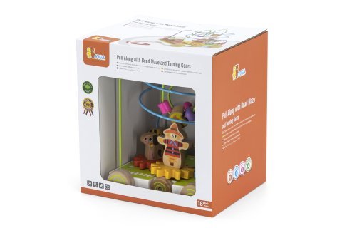 Lesen labirint na kolesih, velik približno 20,5 × 25 × 19,5 cm. Labirint vključuje tudi kolesa z zobmi, ki se med premikanjem vrtijo.Vključuje vrvico za vlečenje.Velikost paketa približno 24 × 25,5 × 19 cm. Starost od 18 mesecev dalje