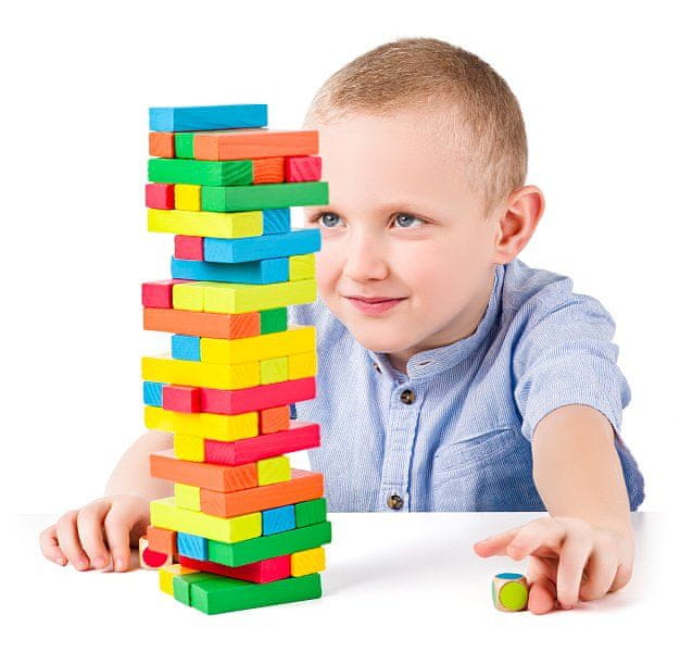Vznemirljiva igra za vso družino, otroke in odrasle Poskusite pobrati bloke s telesa stolpa in jih postaviti na vrh, ne da bi se stolp zrušil Dobro za urjenje potrpežljivosti, motoričnih spretnosti in natančnosti