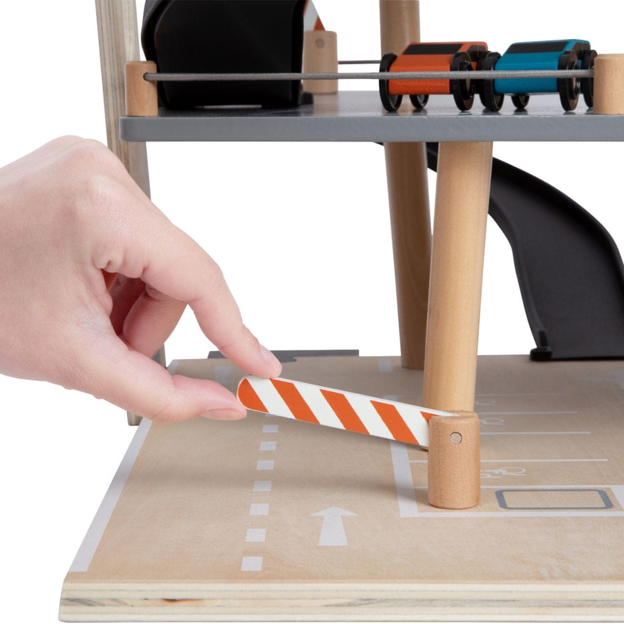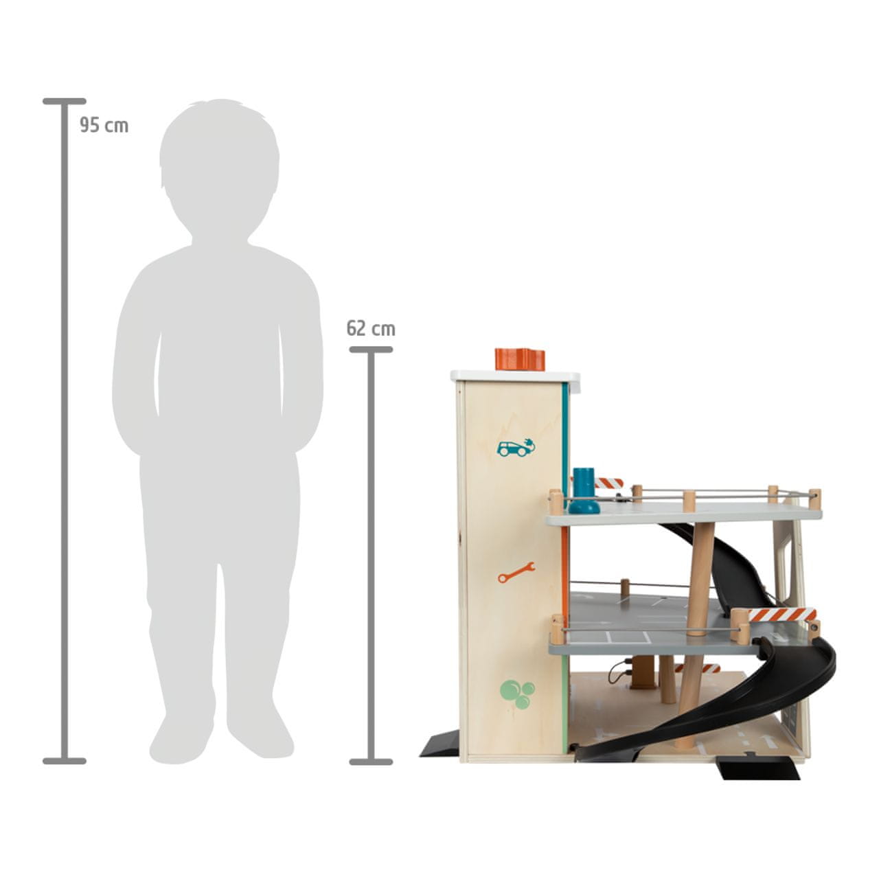 Video je namenjen le ponazoritvi, prikazuje povezan izdelek. Parkirajte, natočite gorivo, operite ali popravite – vse z eno samo garažo! Ponuja tri bogato opremljena nadstropja, ki jih povezujejo privlačno, funkcionalno dvigalo in zabavne, brezhibno povezane rampe. Vključuje par avtomobilov, ki lahko uporabljajo črpalke, polnilne postaje, dvižne rampe ali avtopralnice z realističnimi krtačami za fantastične igre. Vsaka raven vsebuje tudi mehansko oviro za temeljito zanimivo izkušnjo. Tla so opremljena z gumijastimi ovirami, ki avtomobilom dodajo dinamiko in preprečujejo, da bi izpadli. Garaža je podrobno opremljena s številnimi barvnimi ikonami in oznakami, ki v igre vnašajo učenje. Izdelana je iz močne, trdne in vzdržljive vezane plošče z dodatki iz masivnega lesa in nestrupene plastike. Izdelek je treba sestaviti, priložena so slikovna navodila za sestavljanje. Glavne značilnosti:garaža in 2 avtomobila3 nadstropja, povezana z delujočim dvigalom in 2 klančinamačrpalka, polnilna postaja, dvižna rampa, avtopralnica in 3 zapahizdružljiv z vlaki drugih proizvajalcev in sorodnimi dodatkibogato okrašen s preprostimi ikonami in oznakamimočna in vzdržljiva lesena zasnova