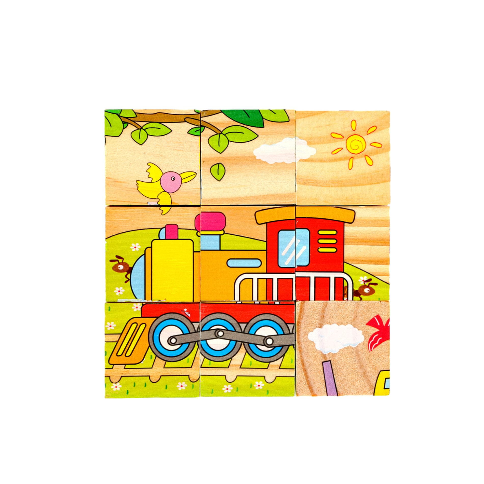 Didaktični 6-delni komplet kock vsebuje 6 različnih motivov, zaradi katerih se otrok lahko veseli slike avtomobila, ladje, letala, vlaka, bagra in rešilca.