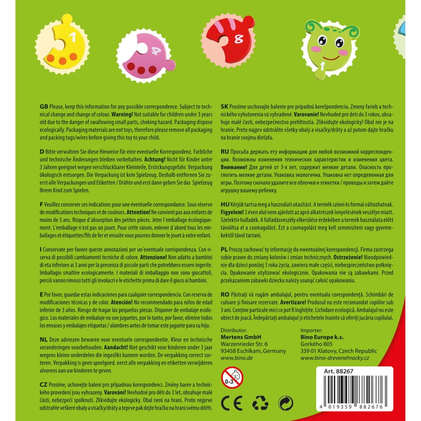 S preprosto sestavljanko v obliki deževnika se lahko otroci na zabaven način naučijo razumeti zaporedje in osnovna števila. Robustne koščke je enostavno prijeti in so živahno obarvani, zato zlahka pridobijo in ohranijo otrokovo pozornost. Izdelano iz masivnega lesa, obdelanega z nestrupenimi barvami. Priložen je v priročni, lahko prenosljivi škatli z zanko. Glavne značilnosti:10 delov sestavljanketrpežna zasnova iz masivnega lesapraktična embalaža