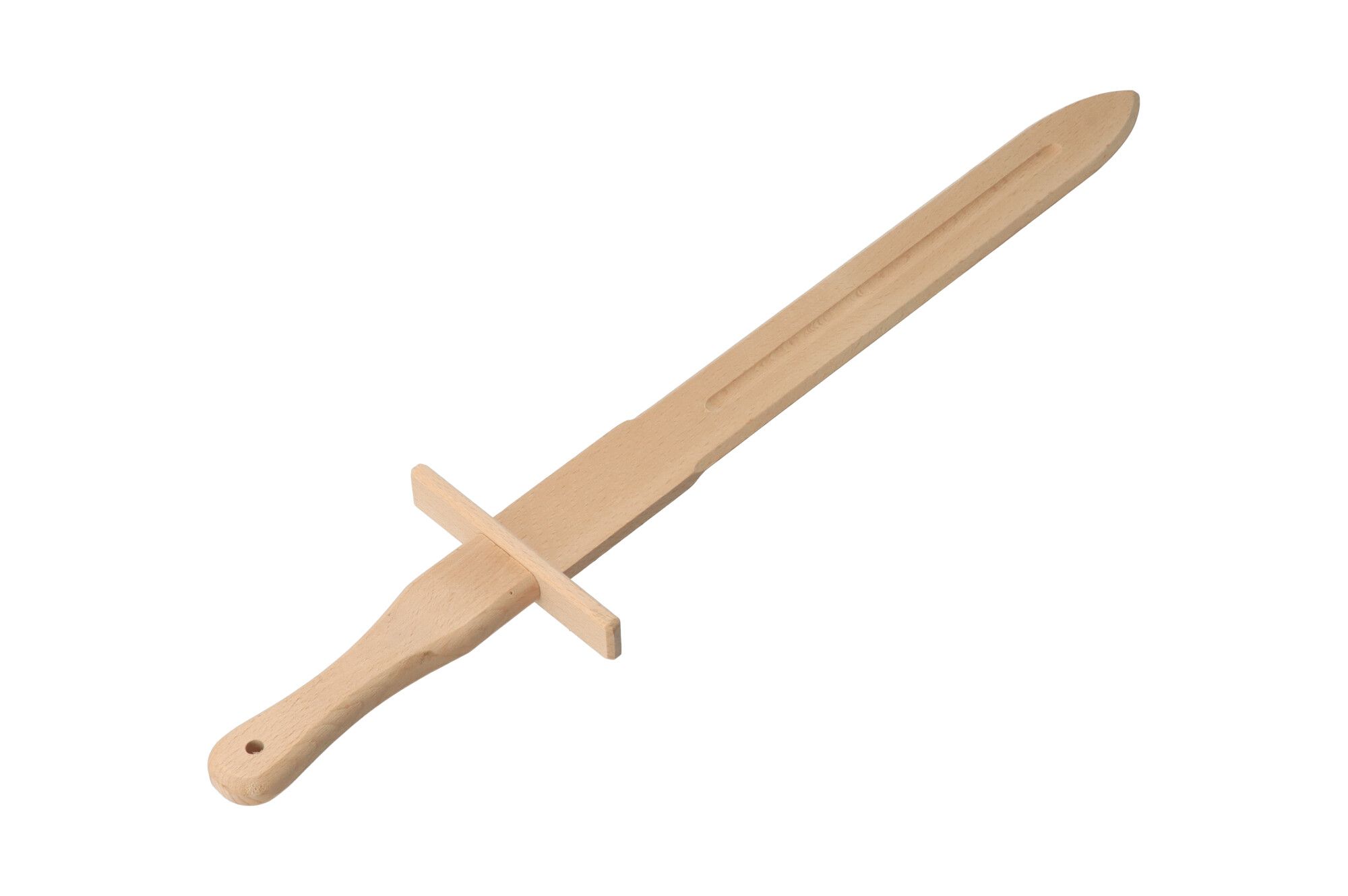 Dobro izdelan velik lesen meč. Njegova dolžina doseže 55 cm. Idealen je za igranje vitezov in ker je „čist les“, ga je možno okrasiti po vaši domišljiji! :-) NAMIG! Lahko tudi lasersko zažgemo ime vašega malega viteza ali katero koli sliko ali okrasek. Celoten opis