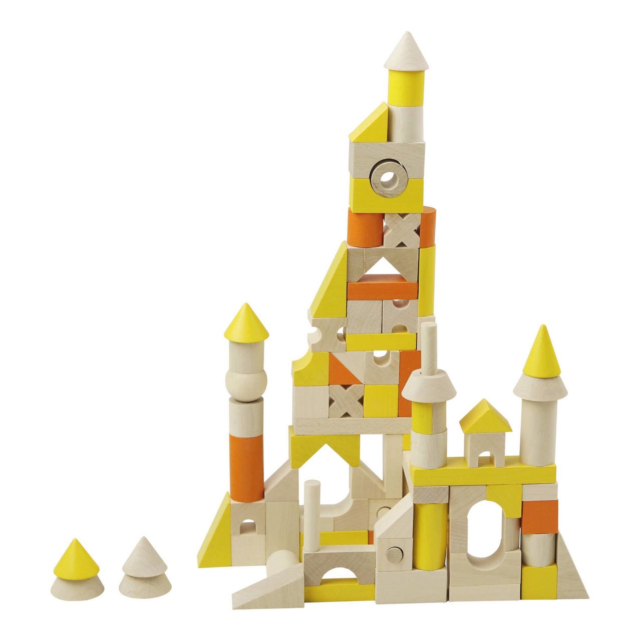 Vsebuje 96 kosov – klasične kocke, bloki, valji, palice, igle, "X"ka…nekateri so tudi navrtani, osnovna velikost kocke je 2 cm Dimenzije škatle:i 12 × 18 × 12 cm Primerno od 3. leta starosti dalje