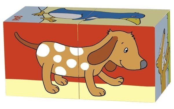 Kocke za najmlajše! To je zabavno sestavljanje 2 lesenih kock, iz katerih lahko postopoma sestavite 6 slik veselih živali (žirafa, lisica, slon, pingvin, pes, zajec). Ali veste, kako so te živali videti? Ali jih znaš sestaviti? Kakšna bodo njihova imena? Kocke so odlično darilo za prvi rojstni dan za vaše najmlajše. GOKI je eden najpomembnejših evropskih proizvajalcev igrač visoke pedagoške in didaktične kakovosti. Podjetje poudarja varnost igrač, njihovo zdravstveno neoporečnost in skrbi za obnovljive vire. Les se pridobiva tam, kjer lahko raste. Uporabljajo se naslednje vrste lesa: javor, bukev, oreh, lipa, jesen, bor, breza in kavčukovec. Barve in laki so nabavljeni pri manjših proizvajalcih.