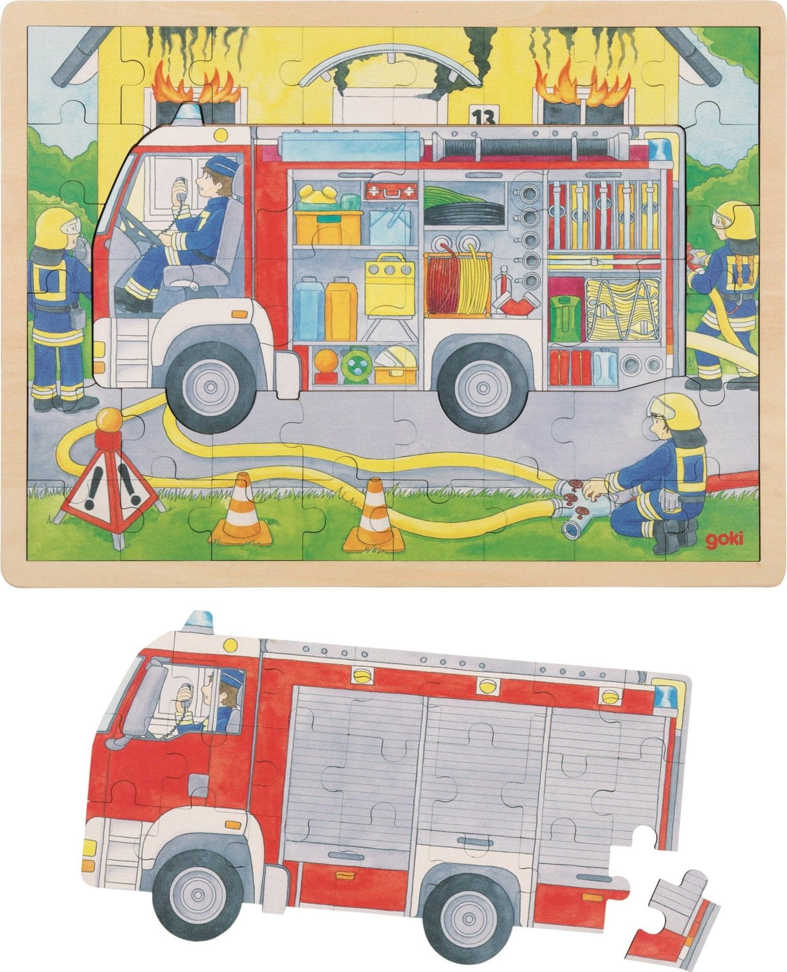 Goki Večplastna lesena sestavljanka Gasilci na delu 59 kosov