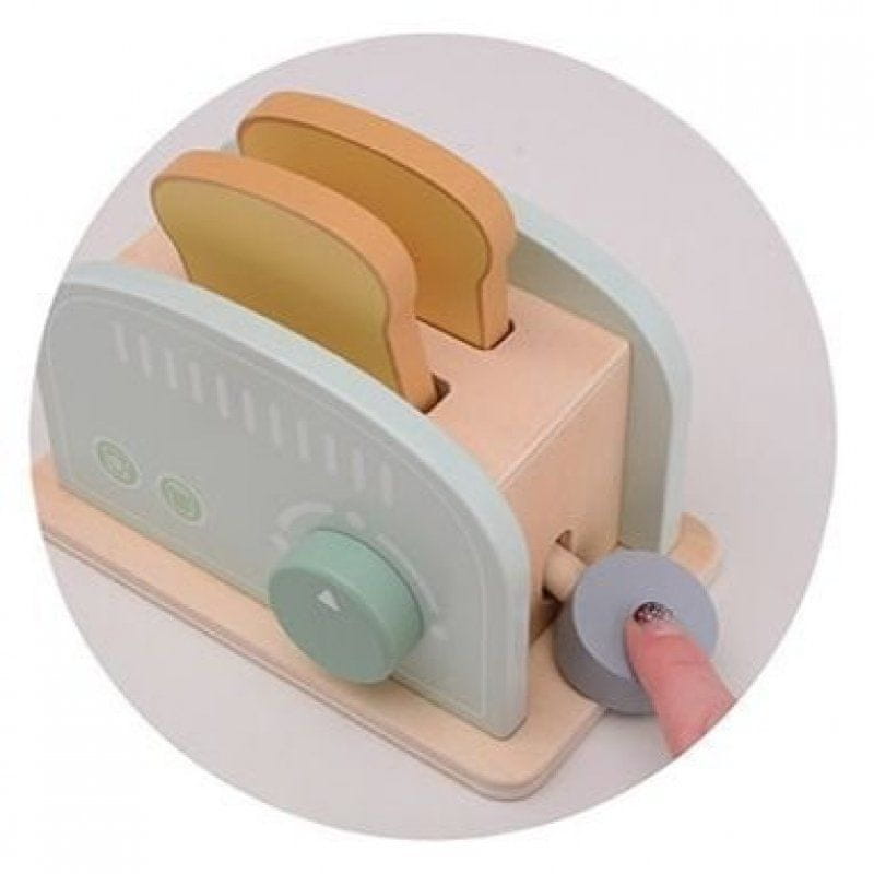 Leseni opekač kruha v čudovitih, nežnih, pastelnih barvah. Celoten opis