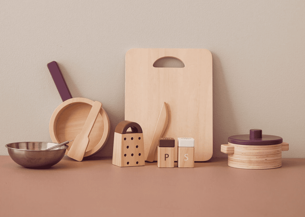 Kuharski set je del popolne zbirke lesenih igrač Kids Concept Bistro.