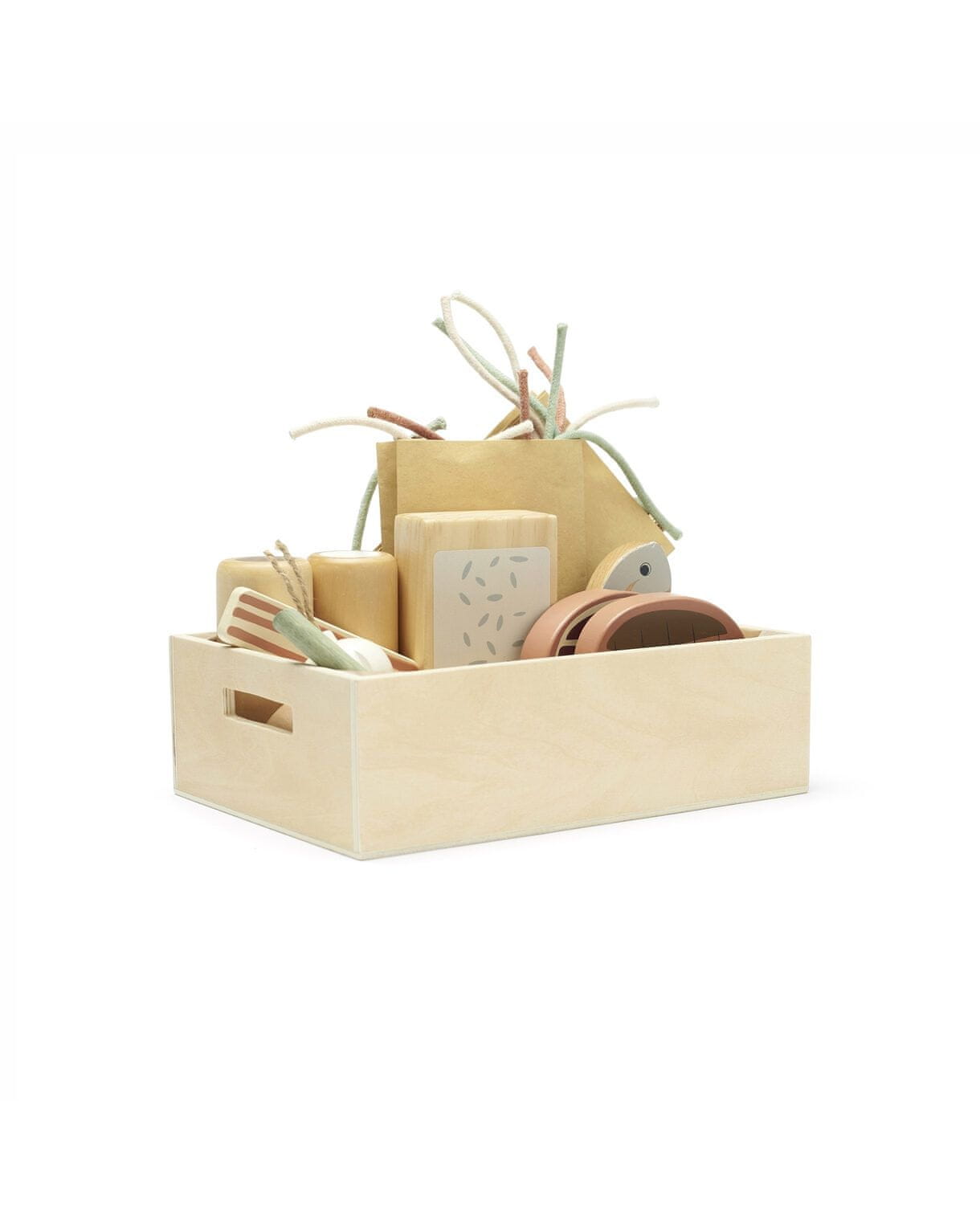 Lesen igralni set blagovne znamke  Kid's Concept bo navdušil vaše male kuharje. Set vsebuje 2 vrsti testenin, zavojček riža, 2 krompirja, 6 zelenih fižolov, česen, kos mesa, ribji fili in eno ribo. V kompletu sta priložena tudi sol in poper, ki oddaj… Celoten opis
