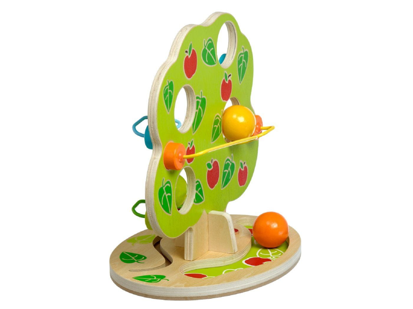 Čarobno drevo je lesen tobogan v obliki listnatega drevesa z več kaskadnimi tirnicami na straneh. Na tirnice postavite leseno kroglico, ki se bo kotalila po različnih stezah in ob trčenju in kotaljenju proizvajala zvoke „klikanja“, dokler se ne zavihti pod drevo, kjer se ustavi. Ta privlačno oblikovana igrača bo odlično darilo za aktivnega otroka, ki rad premika in hrešči. Tri velike gladke lesene krogle so zabavne za majhne otroke. Igrača spodbuja širok spekter gibanja in uporablja prostorsko mišljenje. Dimenzije ovalne podlage: dolžina 29 cm, širina 22 cm, višina drevesa 31 cm, premer kroglic 4,5 cm.